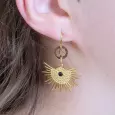 Ces boucles d’oreilles soleil incarnent la force, la lumière et la féminité. Un bijou fort, tout en délicatesse, qui ne manquera pas de faire sensation.