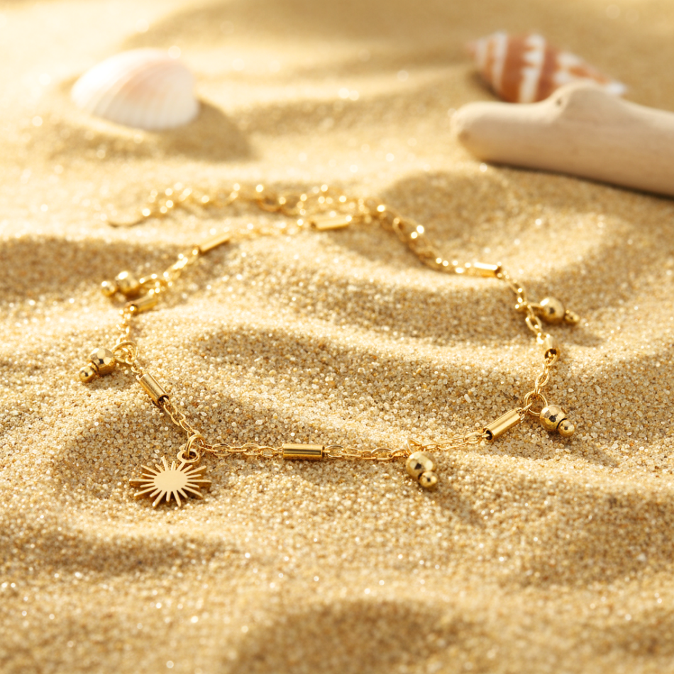 Sonnenfußkettchen aus goldenem Edelstahl