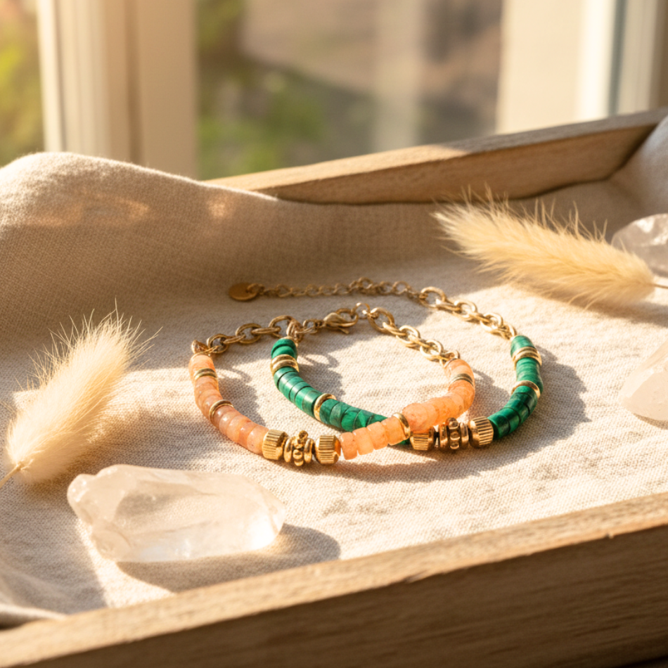 Doppeltes Natursteinarmband – Verstellbarer Damenschmuck aus Edelstahl