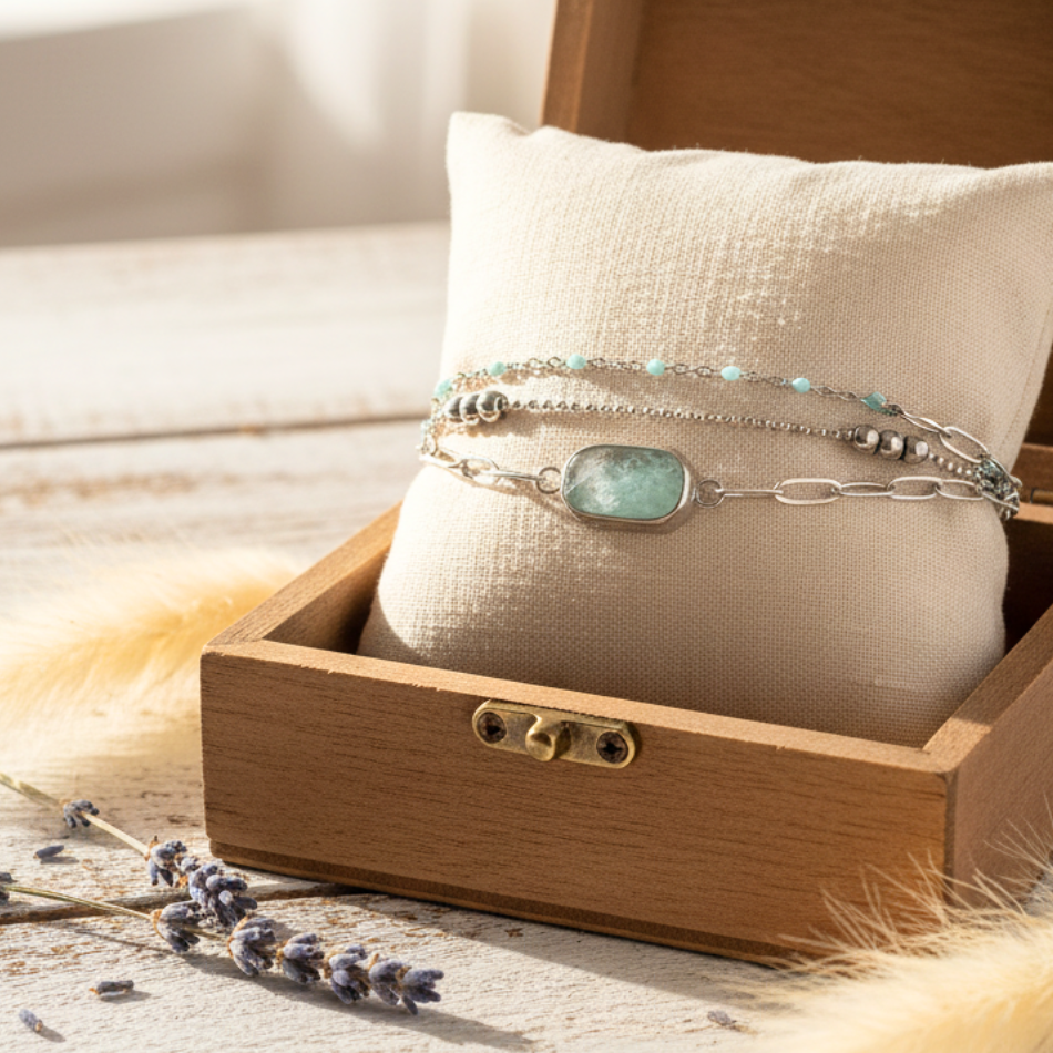 Unser Schmuck wird hauptsächlich aus Edelstahl gefertigt, einem robusten, wasserfesten Material, das nicht anläuft. Ob Gold oder Silber – jedes Schmuckstück ist so gestaltet, dass es Ihren Stil unterstreicht und gleichzeitig sanft zur Haut ist.