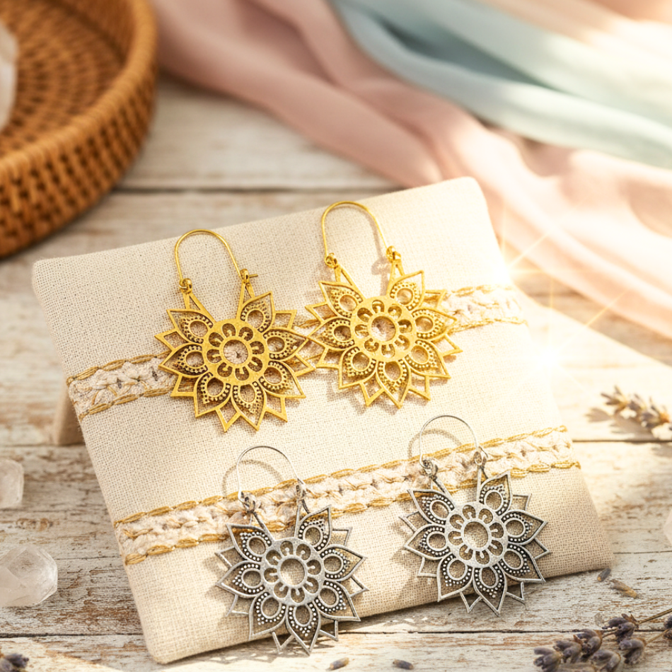 Mandala-Ohrringe aus Edelstahl – Goldene oder silberne Creolen für Damen