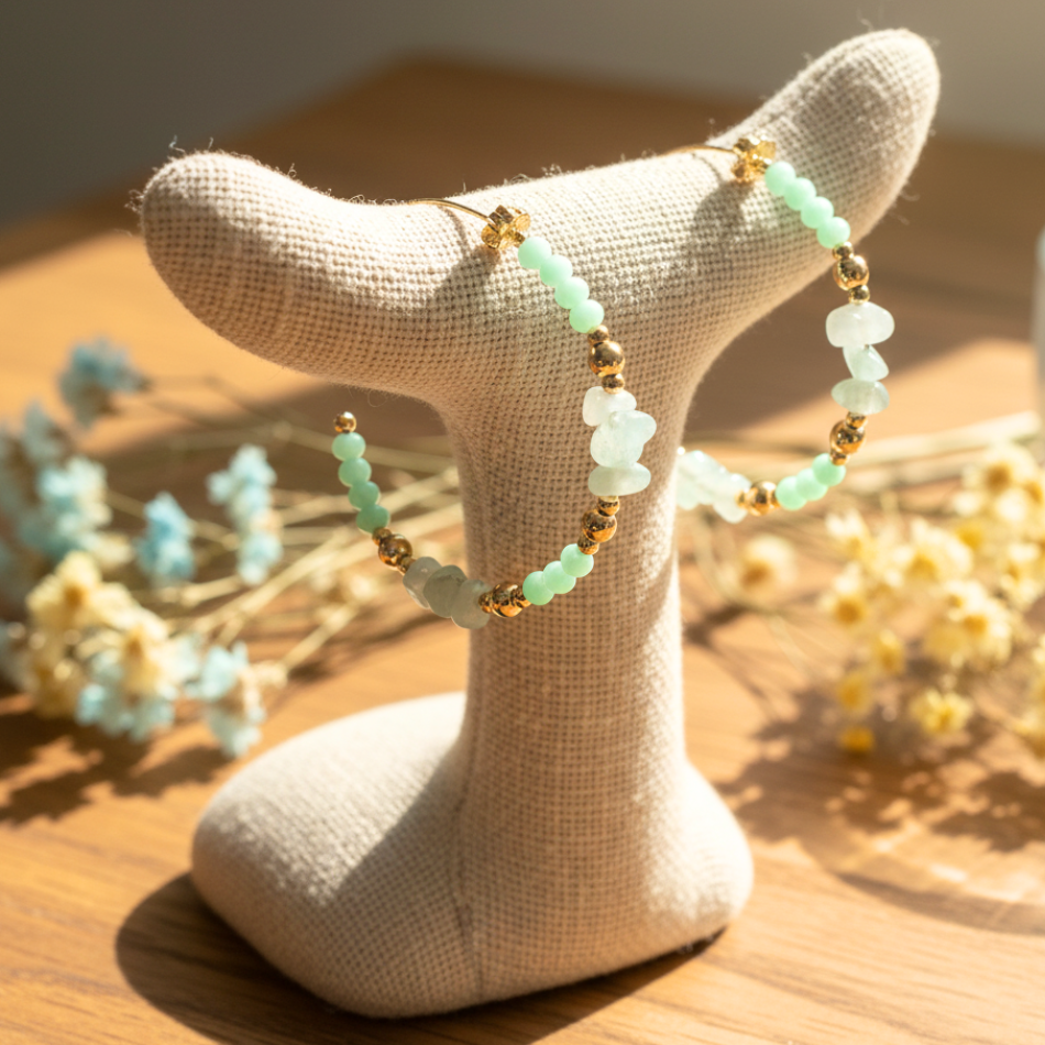 Türkis-goldene Creolen – Natürliche Aventurinperlen und Edelstahl