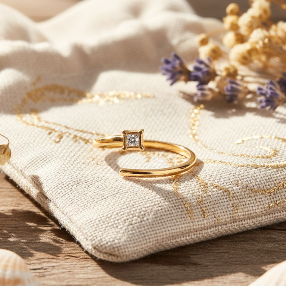Verstellbarer, vergoldeter Damenring – Edelstahl mit quadratischem Zirkonia