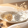 Disponible en doré et en argenté, elle offre un rendu lumineux et féminin grâce à ses pétales sertis de strass brillants.