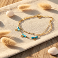 Dieses zweireihige Armband aus Gold und Türkis wird schnell zu einem charakteristischen Schmuckstück, das Ihre Outfits aufwertet und Zartheit mit Modernität vereint.