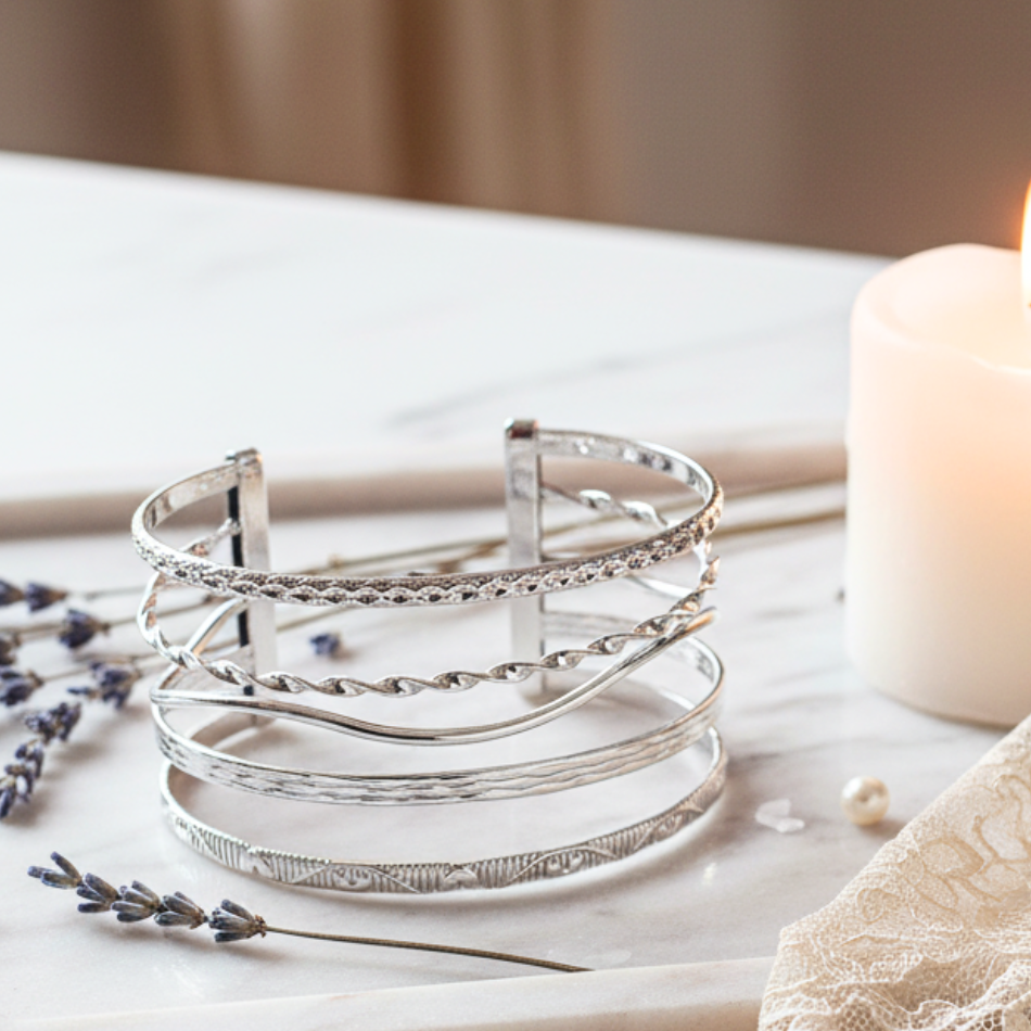 Stil : Starre Manschette mit 5 integrierten Strängen, mehrlagiger Armbandeffekt