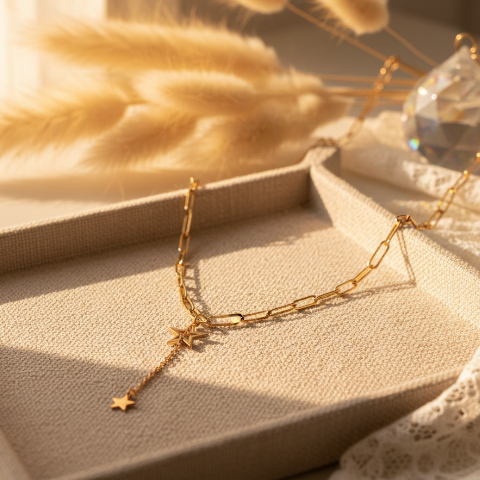 Women's star necklace in gold or silver stainless steel – star charms – trendy jewelry