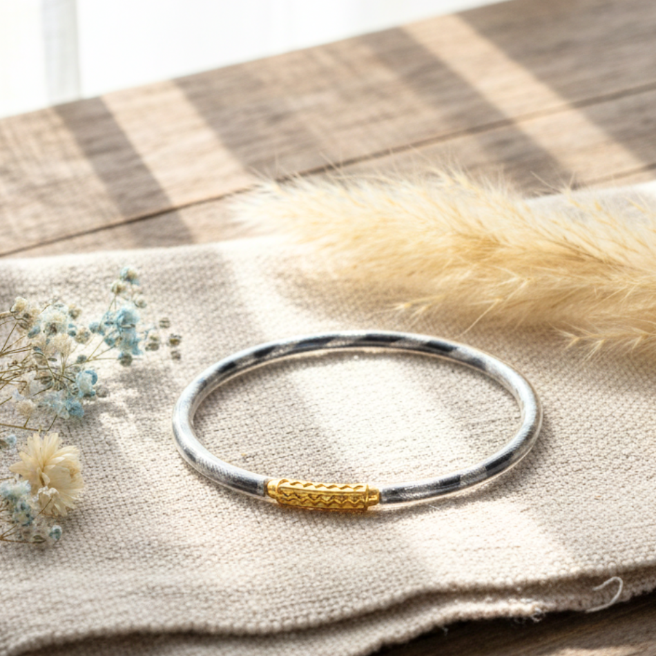Add a touch of zen and elegance to your style with this transparent gold Buddhist bangle bracelet . Inspired by Tibetan traditions, it combines minimalism, lightness, and comfort for effortless everyday wear.