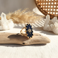 Bague ajustable dorée en acier inoxydable – Pierre noire et motif étoile