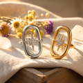 Disponible en deux finitions intemporelles – doré chaud ou argenté éclatant – cette bague s’adapte facilement à toutes les morphologies grâce à sa structure ajustable et ouverte à l’arrière. Elle peut ainsi se porter aussi bien au majeur, à l’index ou à l’annulaire selon ton style.