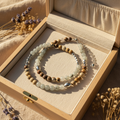Chaque perle raconte une histoire : les nuances sableuses du jaspe évoquent des paysages désertiques, tandis que les reflets subtils de la labradorite rappellent la brume d’un matin d’automne. Les touches d’acier inoxydable apportent modernité et durabilité.