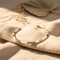 Le jonc alterne des segments blancs et dorés au fini lisse et lumineux, offrant un rendu élégant et raffiné. À porter seul pour un effet discret ou en accumulation pour un look tendance et affirmé. Léger et confortable, il s’accorde parfaitement à toutes vos tenues, d’une robe fluide bohème à un blazer structuré.